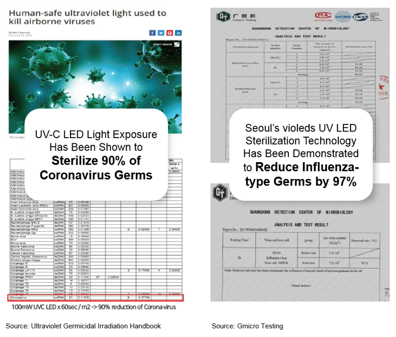 首尔伟傲世 UV LED “violeds”可预防新冠状病毒传播