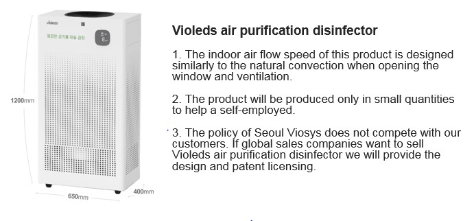“The purification and first clinical use of penicillin discovered by Alexander Fleming had been taken 11 years and a long time to save millions of lives. However, we hope that our Violeds air purification disinfector technology is adopted by global product companies, and interest of governmentlocal government with great leadership to save millions of lives and help small business owners suffered due to COVID-19 pandemic as well,” said Chung-hoon Lee, CEO of Seoul Semiconductor and founder of Seoul Viosys.